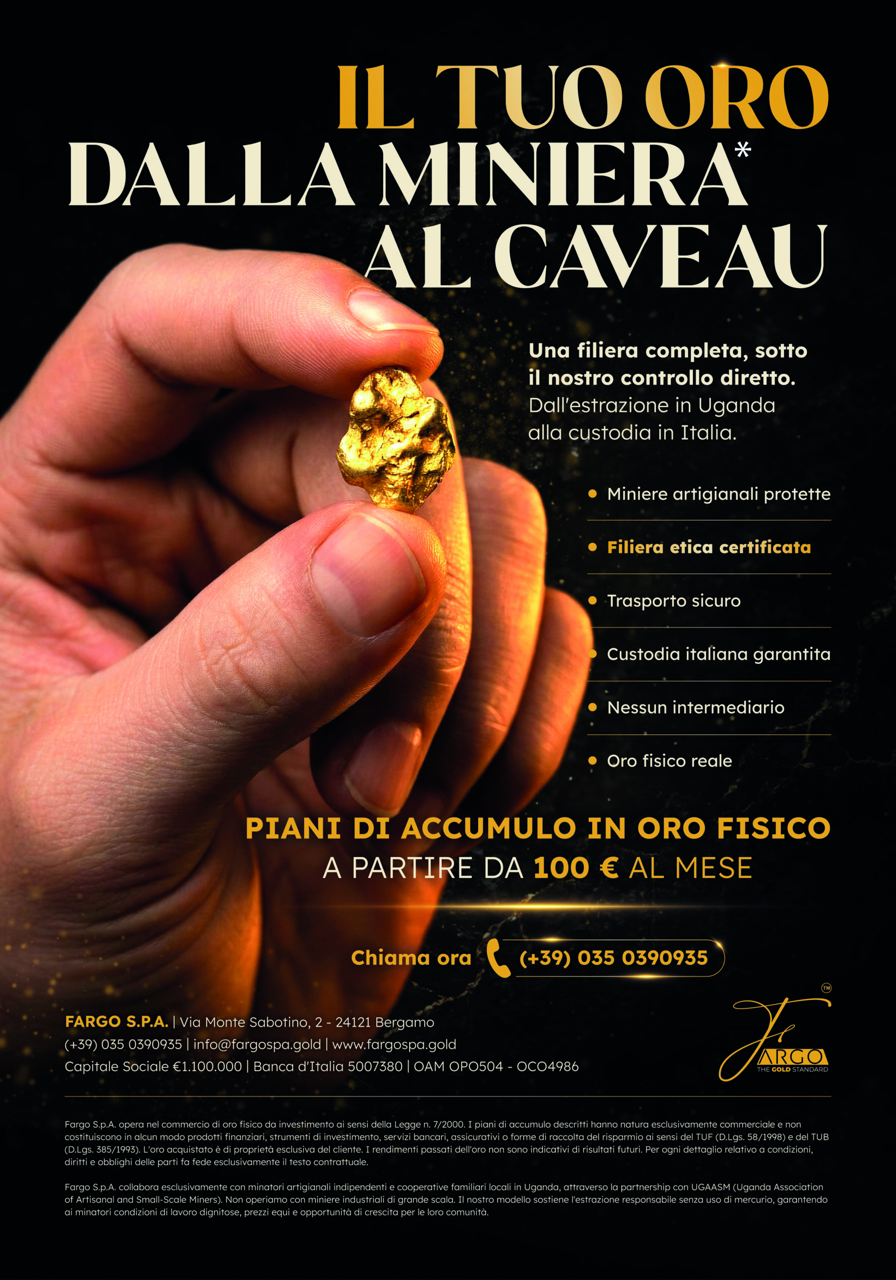 Fargo S.p.A. is an Italian-registered gold trading company operating across Europe and Africa, providing structured access to physical gold through a fully traceable supply chain.